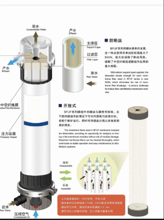 İç basınç tipi: ham su, membranın içinden dışarıya doğru akar, yüksek bulanık su kalitesine uygundur